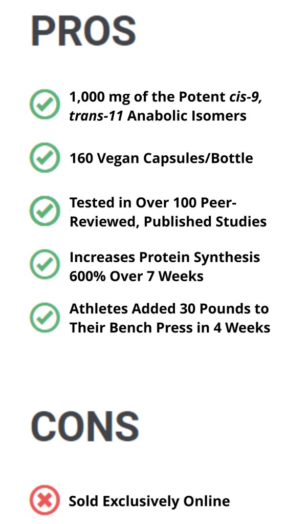 9-FOLD INCREASE IN ARM GIRTH OVER PLACEBO: In a recent placebo-controlled study published in the Journal of Strength & Conditioning Research, 24 male novice bodybuilders were supplemented with C9-T11 isomers or a vegetable oil placebo while completing 6 weeks of bodybuilding exercises.1 Arm circumference and skin-fold measurements showed arm girth increased 9-fold in C9-T11 group compared with the placebo.
