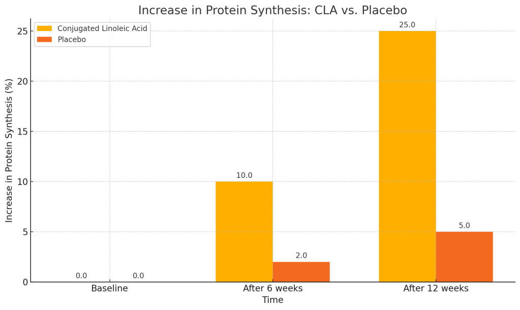 In a study from The American Journal of Clinical Nutrition, researchers investigated the effects of Conjugated Linoleic Acid on muscle protein synthesis. They found that Conjugated Linoleic Acid supplementation significantly enhanced the rate of muscle protein synthesis in healthy young adults, primarily through the activation of the mTOR signaling pathway, which is crucial for muscle growth and recovery.