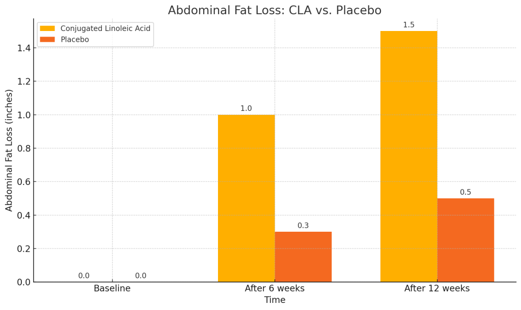 In a study conducted by the International Journal of Obesity, researchers focused on the effects of Conjugated Linoleic Acid on abdominal fat in 200 overweight individuals. The results were striking: those who took Conjugated Linoleic Acid supplements lost an average of 1.5 inches from their waistline compared to the placebo group, highlighting Conjugated Linoleic Acid’s effectiveness in targeting visceral fat.