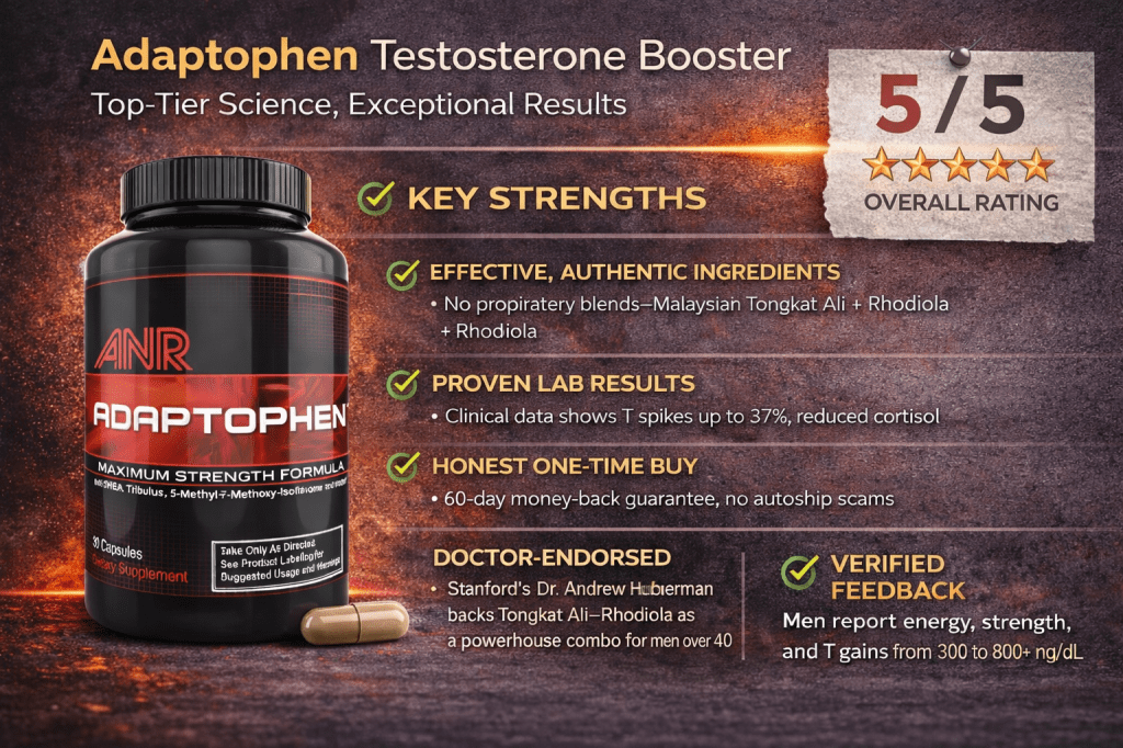 In the expansive world of testosterone supplements, Adaptophen presents itself as a targeted natural booster for men over 40 dealing with gradual declines in energy, muscle recovery, libido, and mental sharpness. Formulated as a daily capsule with adaptogens and hormone-supporting nutrients, it aims to elevate free testosterone levels, curb cortisol, enhance stamina, and promote overall vitality without relying on synthetic hormones or invasive treatments. Priced at around $37 for a 30-day supply (with bulk options reducing it to $27-30 per bottle), it’s available exclusively through the official TeamANR website, emphasizing direct sales to ensure authenticity. Does it stand up to scrutiny? We assessed its ingredients, scientific support, marketing approach, and operational aspects based on independent studies, clinical data, and consumer experiences. The evaluation highlights a supplement that prioritizes quality and evidence, delivering consistent value in a category often marred by inconsistencies.