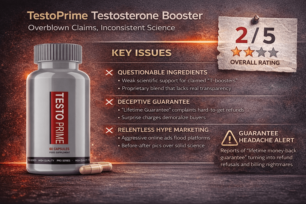 In the competitive landscape of testosterone supplements, TestoPrime touts itself as a “natural testosterone booster” designed for men facing dips in energy, muscle mass, libido, and overall vitality. Marketed as a science-backed formula with 12 plant-based ingredients to stimulate natural T-production, enhance mood, burn fat, and build strength without prescriptions or synthetics, it promises quick results like increased stamina and confidence. Priced at around $60 for a 30-day supply (with bundle deals dropping it to $40-50/month), it’s exclusively available through the official site testoprime.com, often pushed via online ads and affiliate promotions. But does it hold up? We dissected its ingredients, evidence, marketing, and practices based on independent research, clinical data, and consumer feedback. The outcome exposes a product overloaded with hype but undermined by inconsistent science, overpromising claims, and customer service shortfalls.